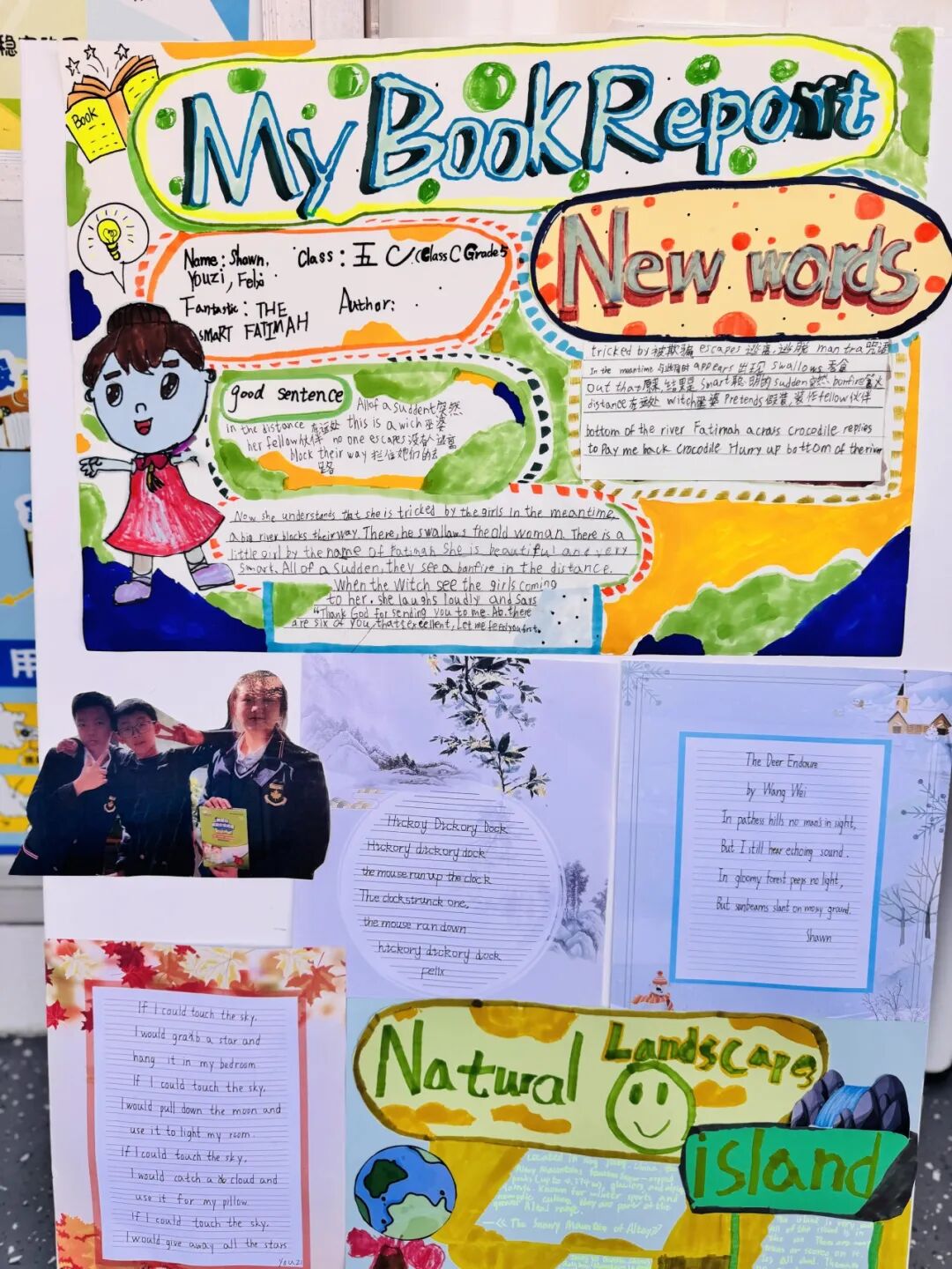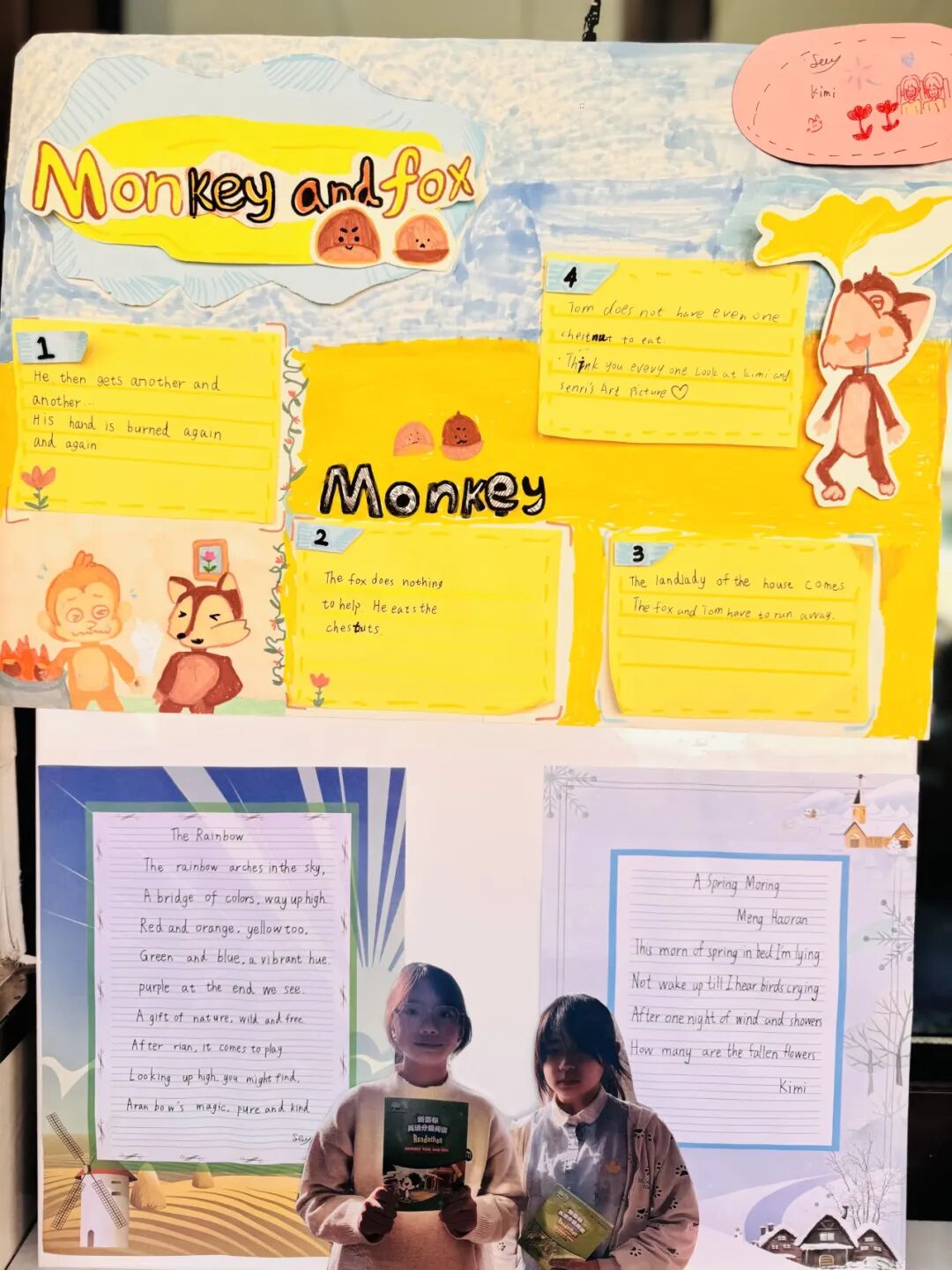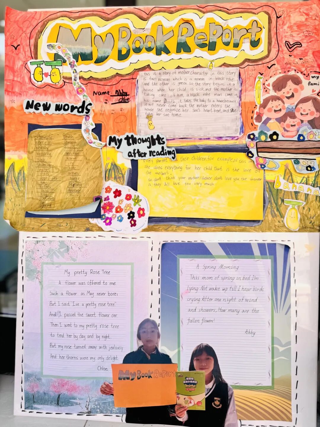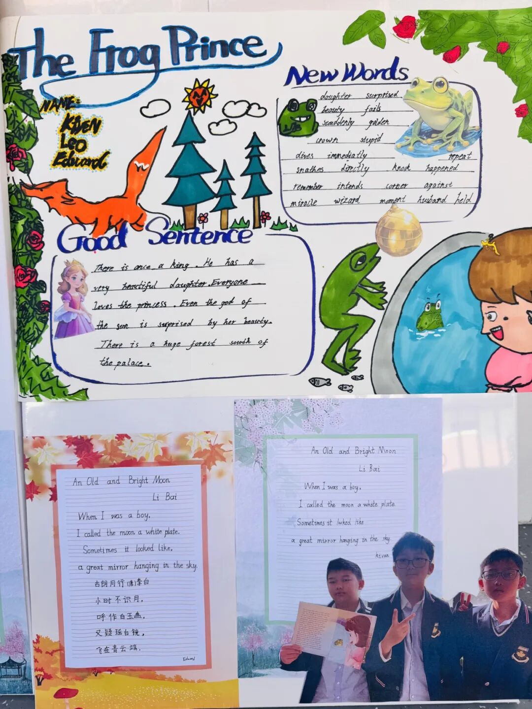 值得一提的是,更有孩子们的作品展:孩子亲手绘制的英语海报、桌上整齐陈列着各科作业与作品……我们愿以这样的方式、将孩子在校的点滴成长、真实、生动地呈现在您面前。