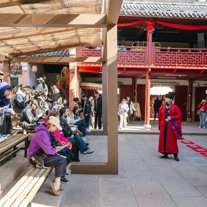 下午的游园之旅更是丰富多彩:搭乘复古有轨电车缓缓穿行于旧日街巷,仿佛时光倒流;在《夜半歌声》剧场感受光影与音乐的沉浸魅力;更在互动剧场中参与了一场酣畅淋漓的复古枪战,在角色扮演中触摸历史的脉搏。
